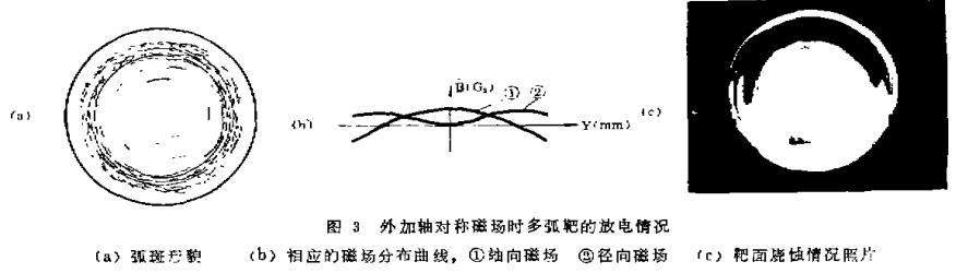 1.磁場對多弧靶電弧燃燒穩定性的影響