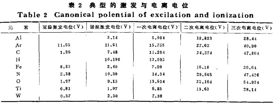不同種類的氣體具有不同的電離電位,表2列出了幾種元素典型的激發與電離電位數值。