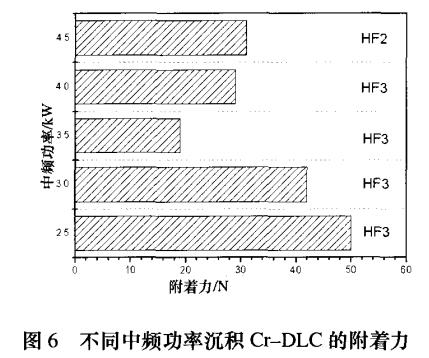 Cr具有優(yōu)異的耐磨性,抗氧化能力強,與鋼基底結(jié)合性能好。文中試驗采用Cr/CrN/CrNC/CrC梯度層作為過渡層沉積了摻Cr類金剛石(Cr-DLC),研究了中頻功率對Cr-DLC微觀結(jié)構(gòu)及機械性能的影響,對膜層附著性能進行了對比分析。