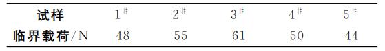 本實驗采用WS-2004型涂層附著力劃痕試驗儀測定薄膜與基體的結(jié)合力,采取連續(xù)性加載方式,載荷從0N逐漸至80N,以突發(fā)性聲信號并結(jié)合光學(xué)顯微鏡觀察法確定薄膜與基體脫離的載荷,并將其作為膜/基結(jié)合強度,結(jié)果如表3所示。