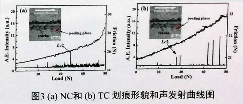 摩擦磨損實驗中,NC摩擦系數(shù)低于TC,這和NC涂層低的表面粗糙度有很大關(guān)系。