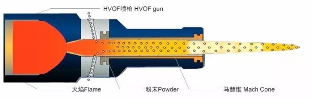 火焰粉末噴涂:用粉末作為涂層填料,持續(xù)地將粉末送到燃燒的氣體-氧氣火焰,火焰的熱量使粉末熔化,并射向處理過的工件表面,然后迅速凝固形成涂層。輸送壓縮空氣的噴氣嘴將火焰包圍起來,并使之適當(dāng)成形。
